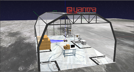 ros2 launch eyantra_warehouse task4c.launch.pycommand. To spawn your arm, start the launch file you created during themoveit_setup_assistantpart, similar to task 2A.(If all done correctly, you should see a world spawned with arm and eBot with three racks in total).